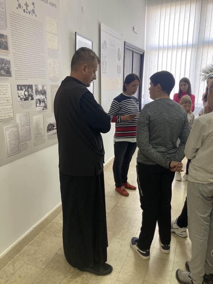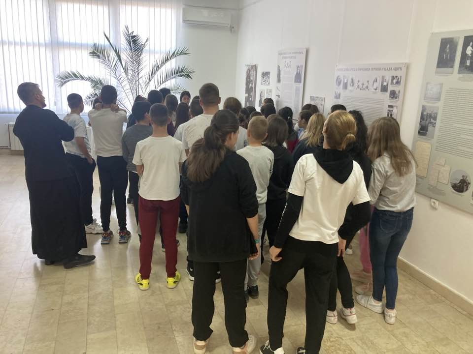 On Monday, 31st October, the pupils of the higher grades of the “Arsenije Loma” Primary School visited the exhibition devoted to Mother Ana Adžić with the catechist Boban Pejović. The class on Mother Ana was held by Vesna Ćurčić, a curator of the Rudnik-Takovo Area Museum.