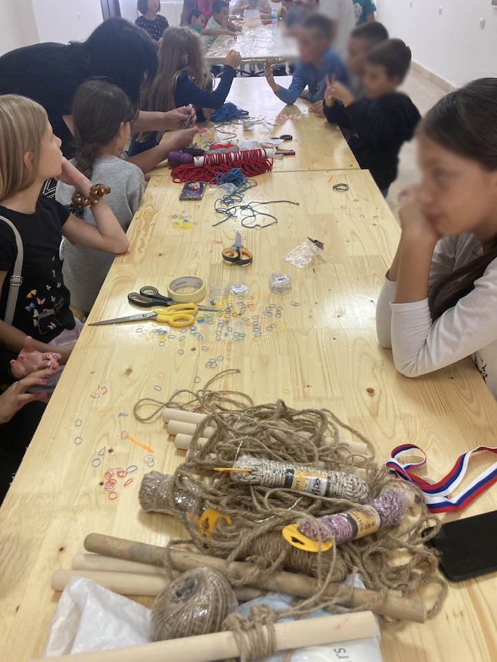 Two more creative workshops for preschoolers and school children were held in the Cultural Center in Rudnik on the third day of “Children’s Week” and event ” When our hands are joined, everything can be done – Get out of the Virtual World”. The first workshop was led by Jelena Despotovic – handcrafting of jewelry from bijouterie and the second one was led by Manda Strugarevic – applied art, macrame technique.