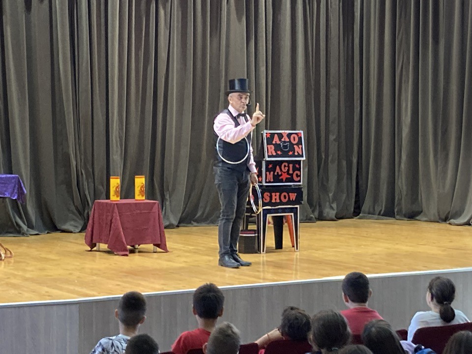 12/10/2023 Magician in the Cultural Center Around 80 juniors from Zemun and their teachers and animator enjoyed the tricks of magician Raxon on Saturday, October 12.
