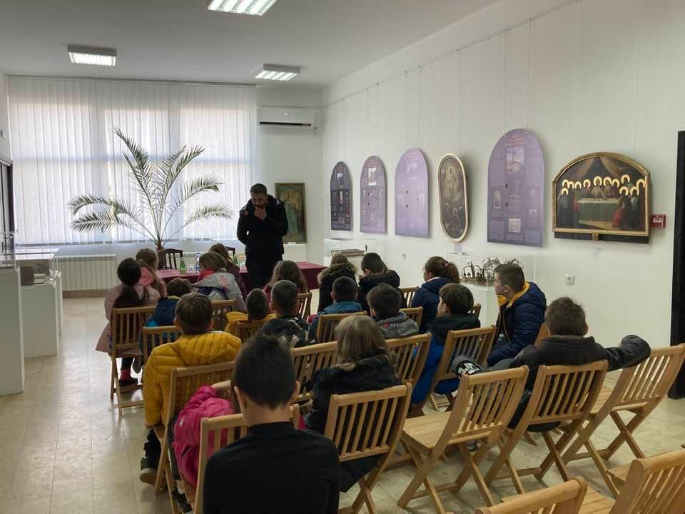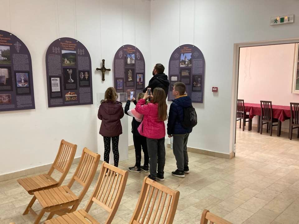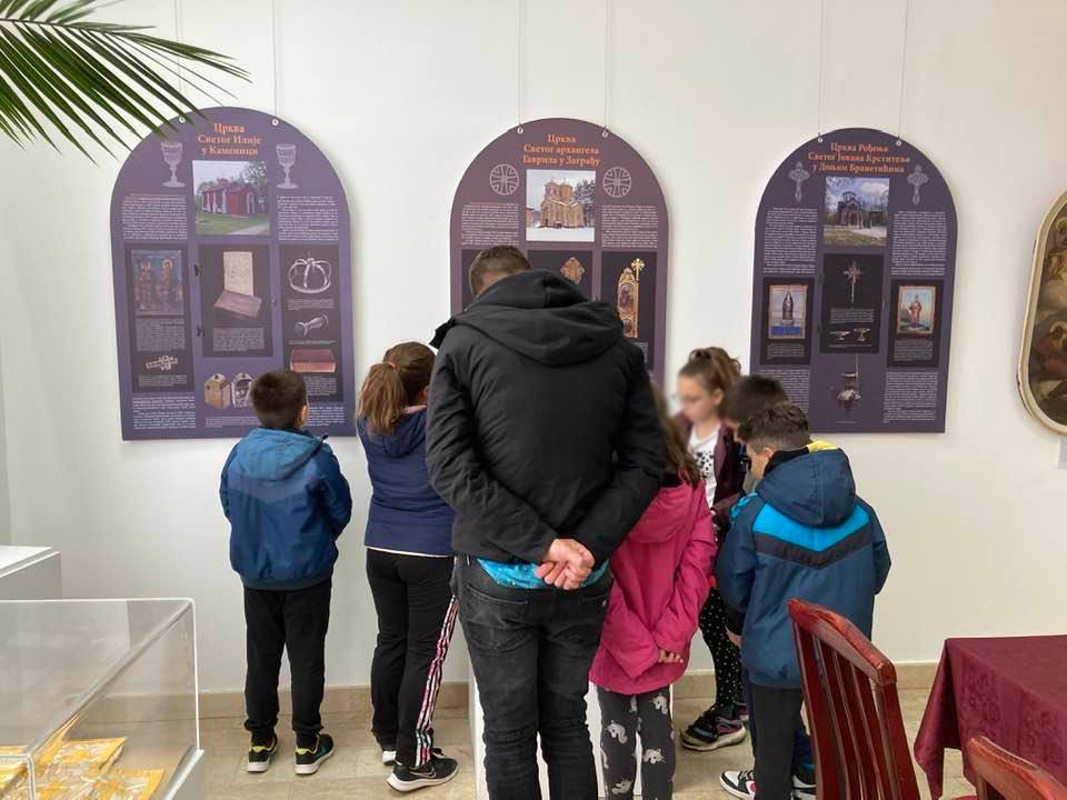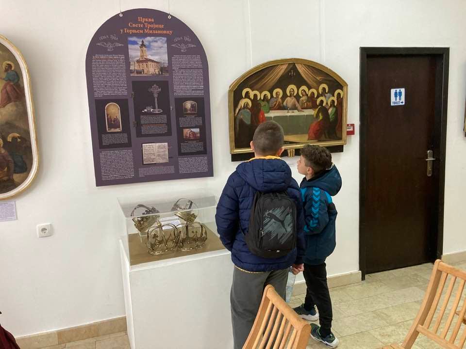 A group of some thirty pupils from Pančevo paid a visit to the exhibition “Treasuries of the Monasteries and Churches of the Mt Rudnik and Takovo Area”, staged in the gallery of the “Vojislav Ilić” Cultural Centre in Rudnik.