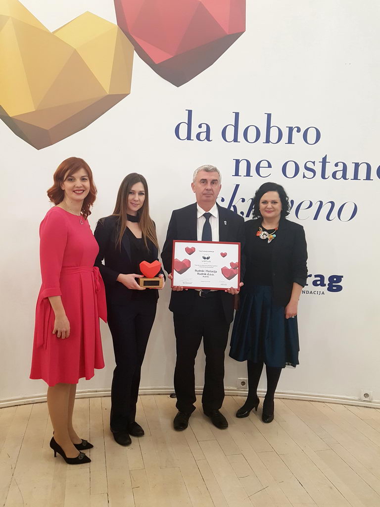The independent jury of VIRTUS, consisting of Katarina Obradovic Jovanovic (Ministry of Economy), Robert Coban (Color Press Group), Ana Toci (Council of Foreign Investors), Radojka Nikolic (NIRA Press) and Nenad Blagojevic (“Stories with Soul” portal) decided to grant the award in the category for the Contribution to the local community in which the company operates, to Rudnik doo company and flotation.