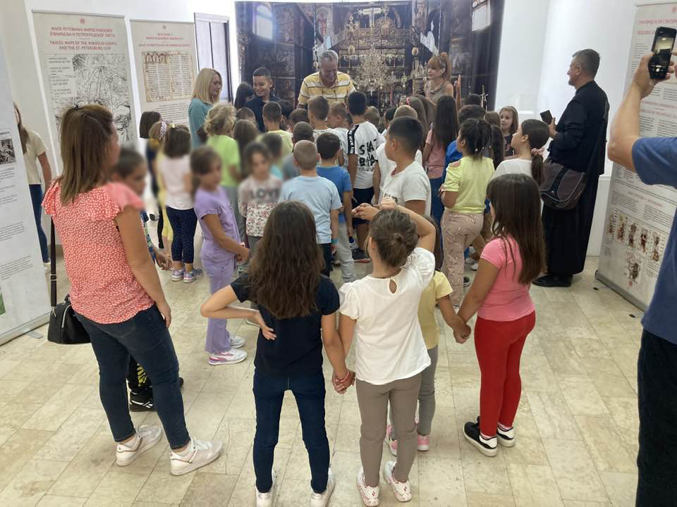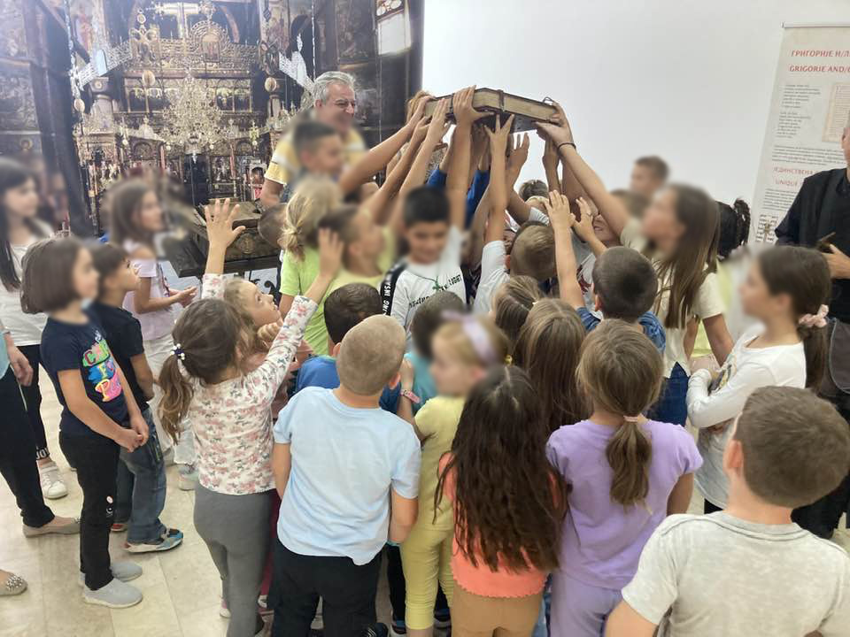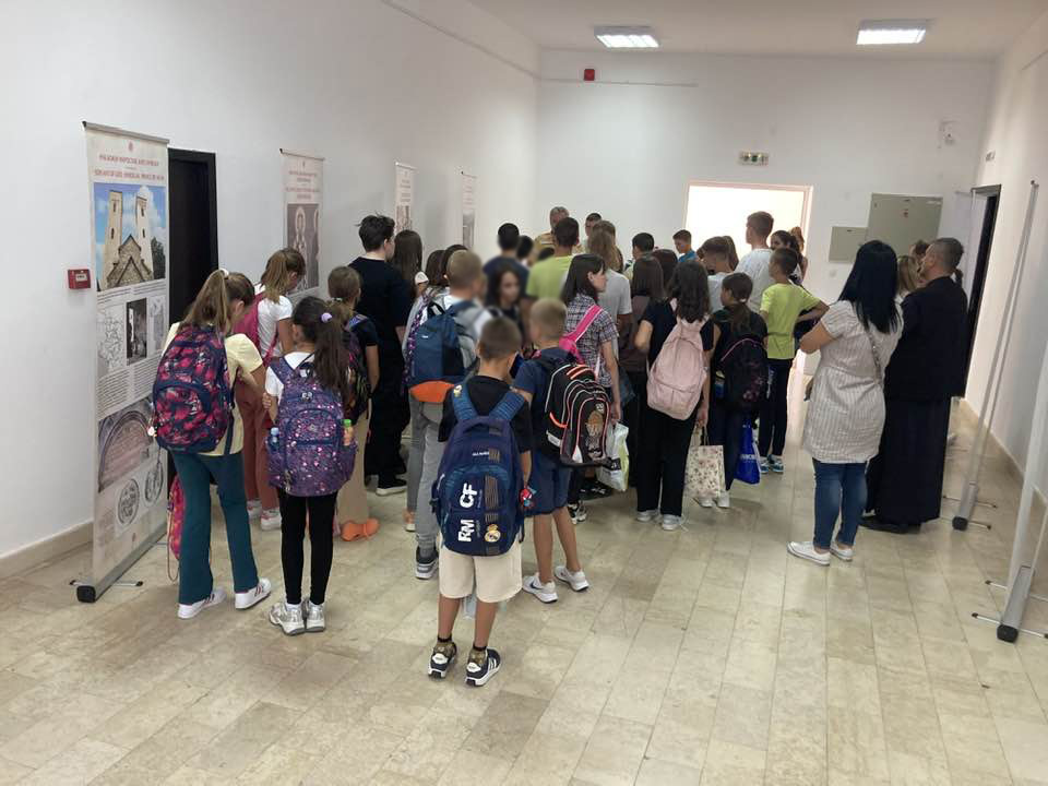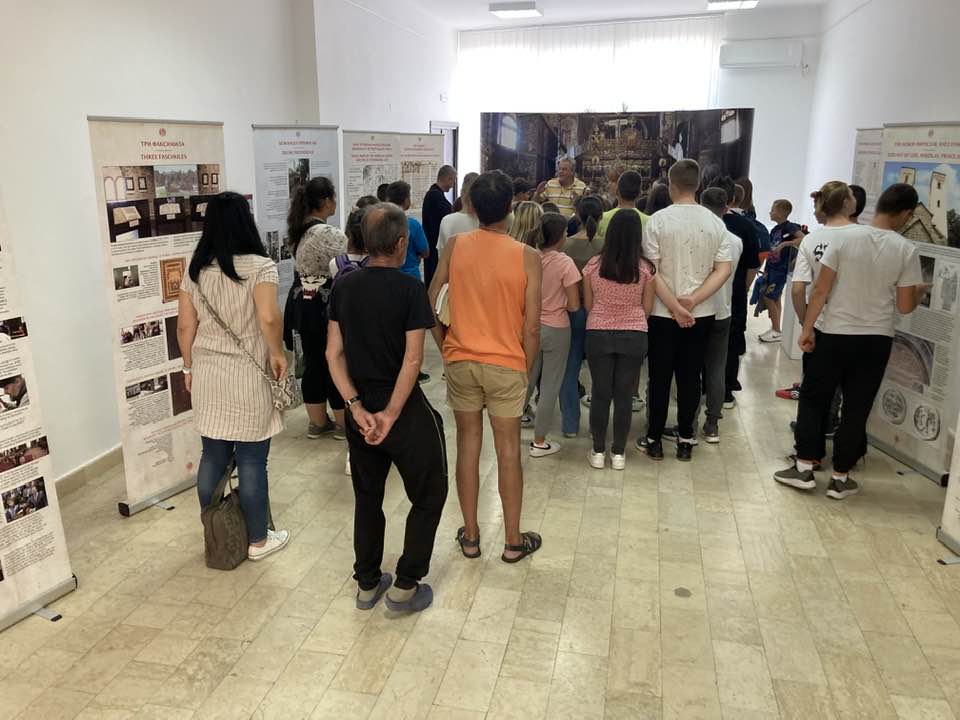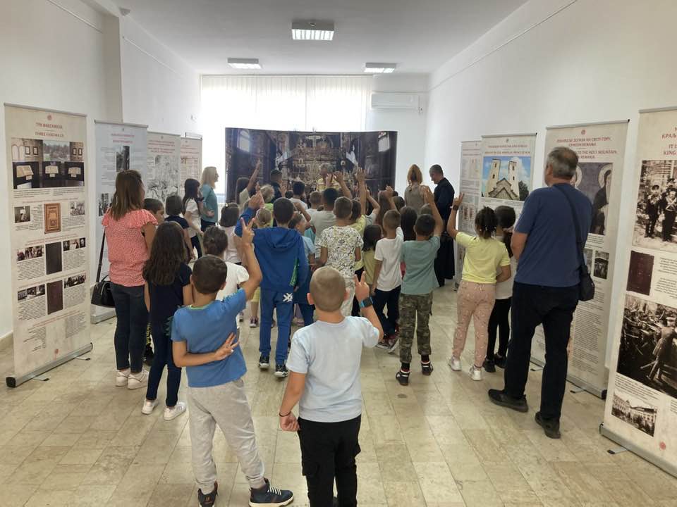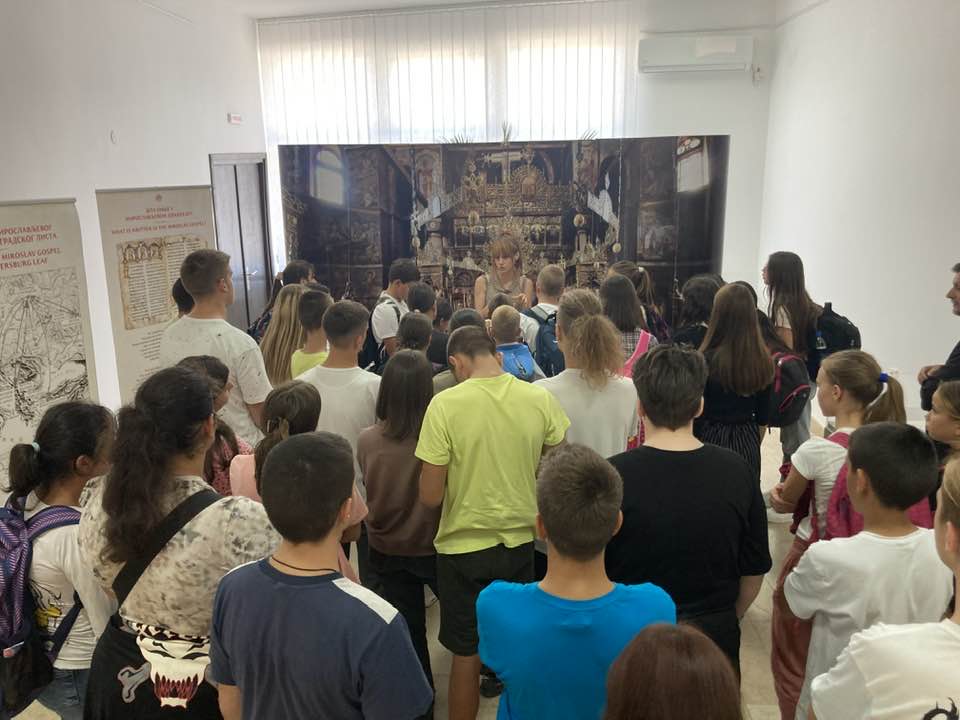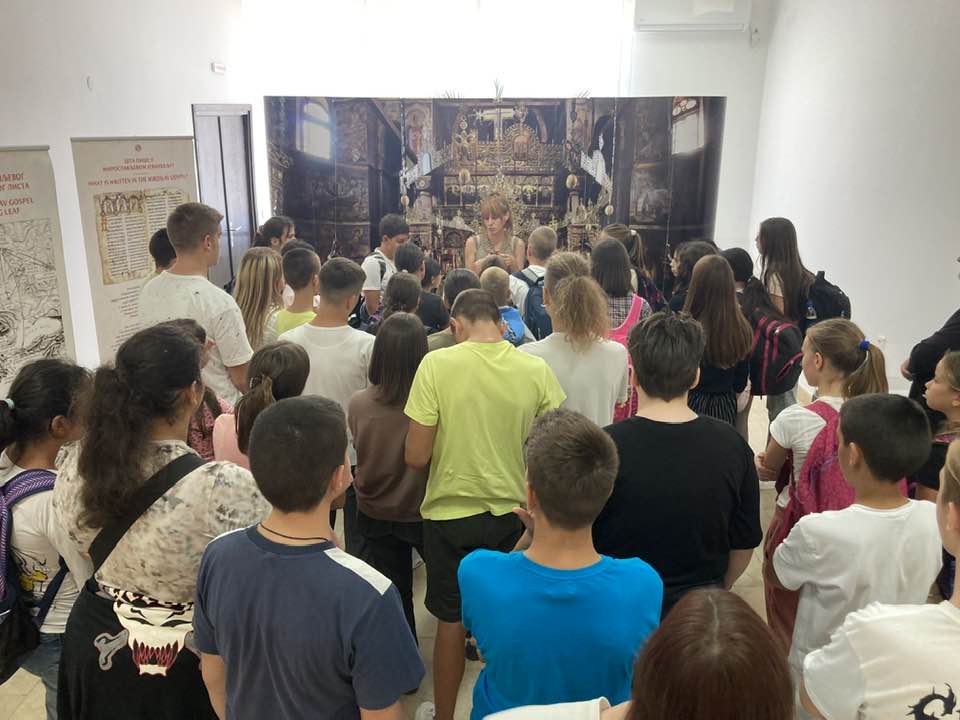 On Monday, September 11, the Miroslav Gospel once again filled the gallery of the Cultural Center with a large number of visitors, a majority of whom were children. The exhibition setting for the visitors was presented by Veljko Topalovic, organizer, and Dragana Acimovic, art historian.