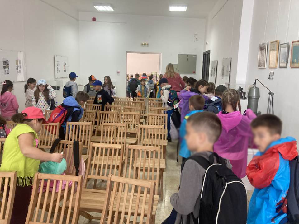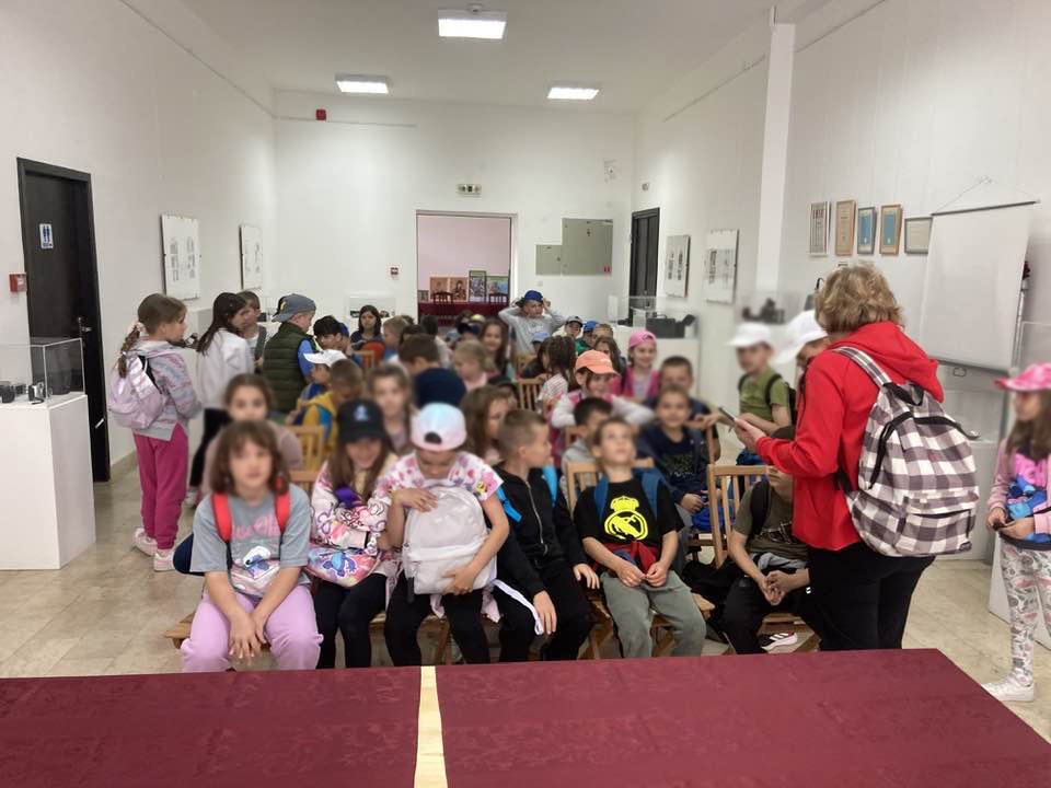 22. maja oko sto učenika prvog razreda Osnovne škole “Jovan Sterija Popović“ sa Novog Beograda sa svojim učiteljicama posetilo je izložbu u Domu kulture “Vojislav Ilić” i prisustvovalo času istorije.